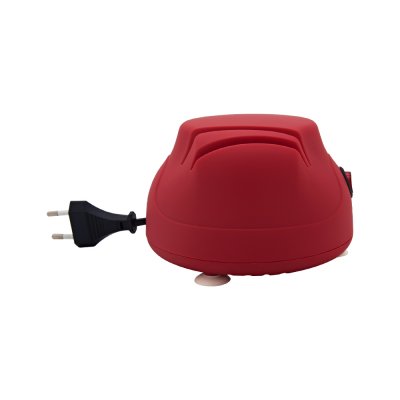 Оригинальная круглая точилка для ножей оснащена двумя абразивными дисками для грубой заточки и доводки лезвий ножей. Сбоку корпуса предусмотрен слот для заточки ножниц и отверток. Время заточки ножа от 1 до 10 минут, время доводки лезвия не более 10 секунд. Питается прибор от сети переменного тока. Для фиксации ножеточки на поверхности стола предусмотрены три присоски.